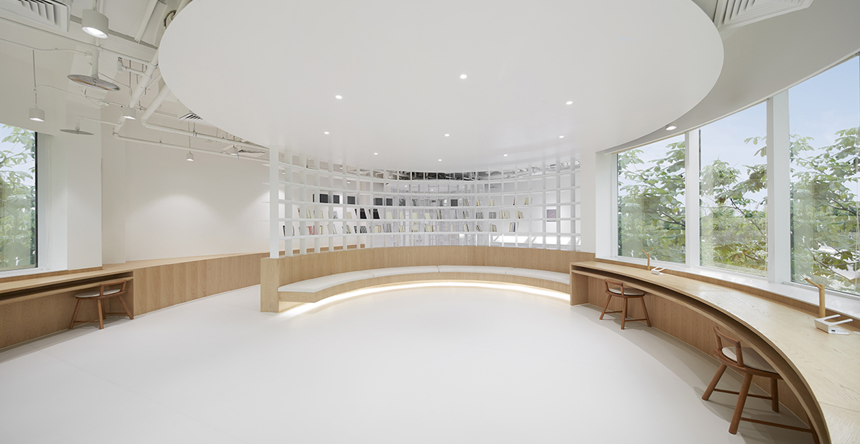 中国最大的房地产服务平台‘贝壳’的办公楼内的图书馆。 是念一位,由于他特有的包容力和言行力量,具有巨大的吸引力的始人而置的。